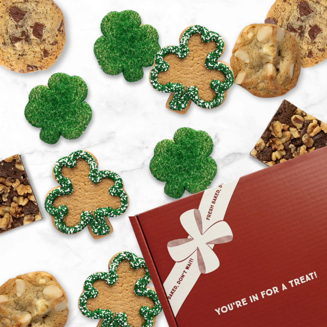 A sampling of every product collection comes in this gift box: 4 seasonally shaped gingerbread cookies (3 for Valentine's Day), 3 chocolate chunk cookies, 3 white chocolate with macadamia nut cookies, 6 brownies, and 6 seasonally shaped sugar cookies.